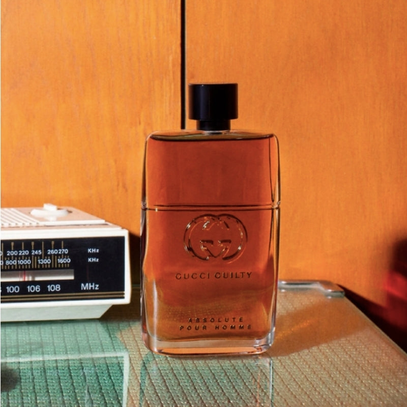 Packaging: Rugged amber bottle with Gucci branding – masculine and gift-ready