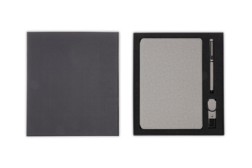 Refillable Notebook, Pen & 32GB USB Keychain – Grey