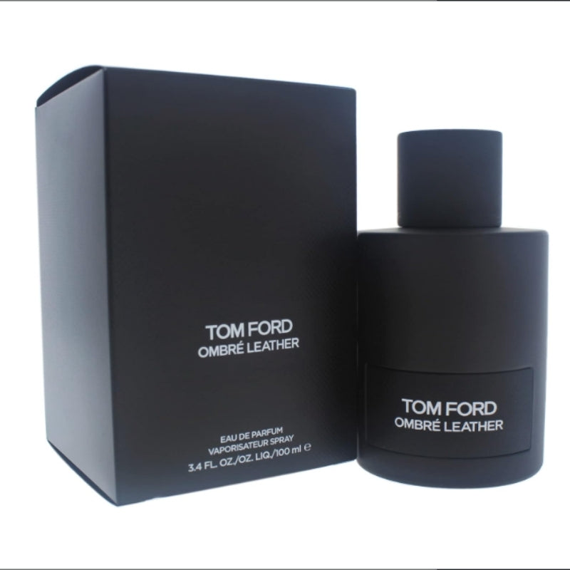 A 100ML bottle of Tom Ford Ombre Leather Eau de Parfum, elegantly boxed and ready to gift.